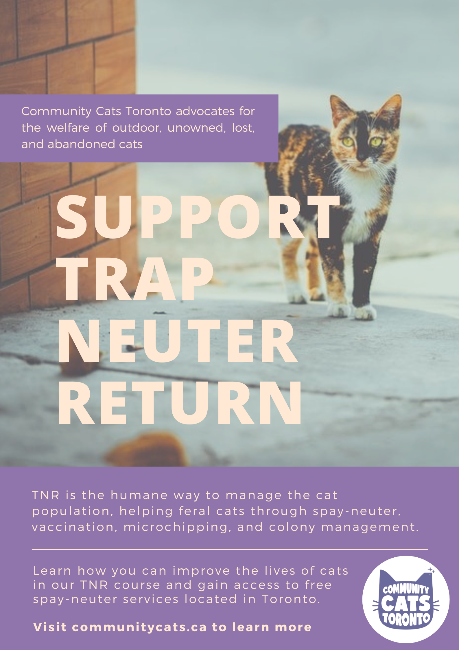 This week, theToronto Feral Cat Coalition, a partnership of Community Cats Toronto, Annex Cat Rescue, Animal Alliance of Canada, Toronto Street Cats, Toronto Humane Society, Toronto Cat Rescue, and Toronto Animal Services is coming together for a large-scale Trap-Neuter-Return (TNR) blitz to help support and manage the city’s feral cat population.